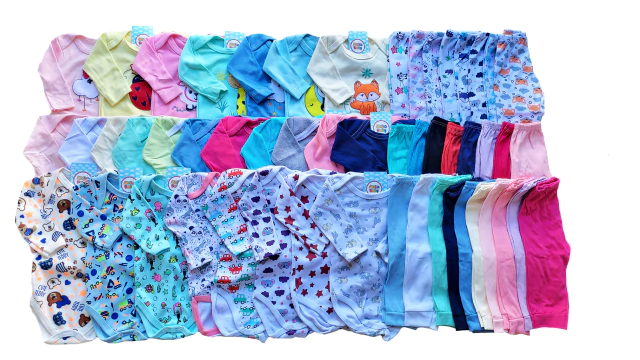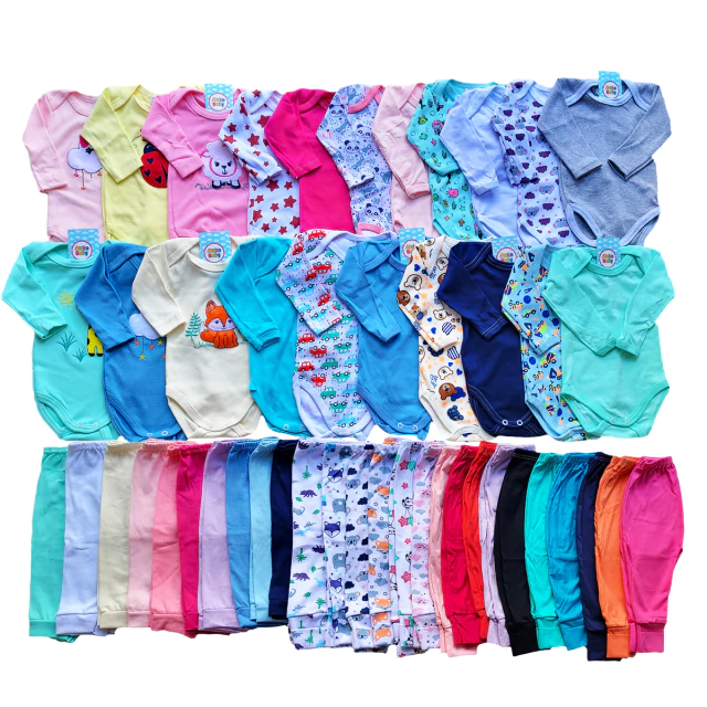 Seu kit será montado em cores e estampas sortidas lindas, perfeitas para Menina, Menino ou Unissex.