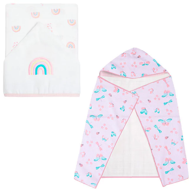 Kit 2 Toalha de Banho Bebe com Capuz - 1 Toalha Forrada em Fralda Estampada 70cm x 70cm e 1 Toalha Soft 1 Camada 1,00m x 90cm Estampada e Bordada