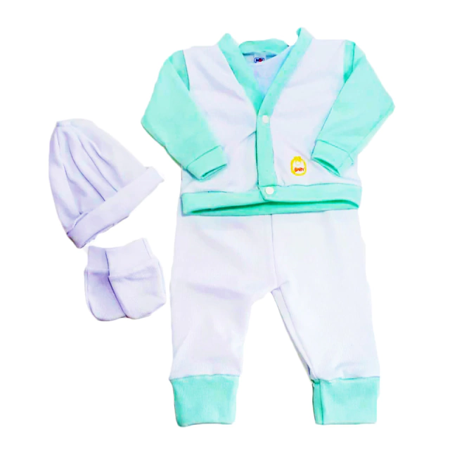 Nesse conjunto de 5 peças confortáveis, superpráticas e úteis para os bebês, especialmente nos primeiros três meses de vida.